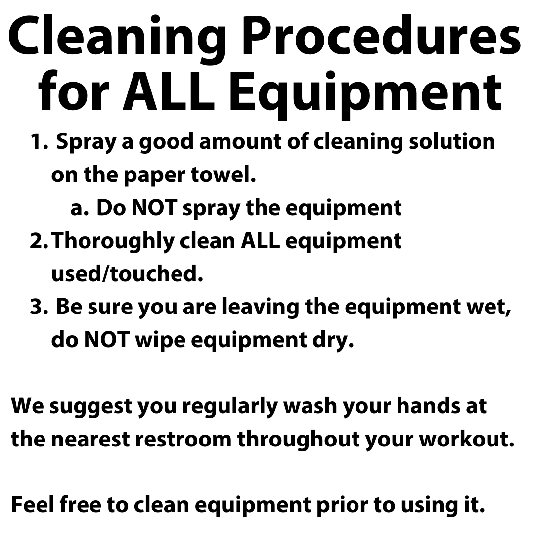 We strive to provide a safe space for all but need your help! Please review our cleaning procedures for the Rec Center.